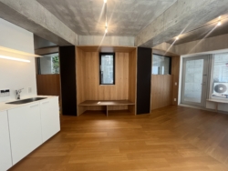 お隣が中庭のため、中庭とお部屋が繋がっているような一体感あるお部屋です。
